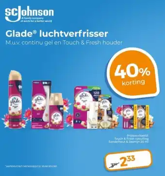 Trekpleister biedt naast de Glade luchtverfrisser een ruime collectie producten aan. Houd de wekelijkse Trekpleister folder in de gaten om de beste aanbiedingen en acties te vinden. Naast Glade luchtverfrisser, kunt u ook de volgende aanbiedingen vinden: Glade Luchtverfrisser, Glade luchtverfrisser navulling & Glade Luchtverfrisser spray lavender.