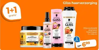 De aanbieding is verkrijgbaar in verschillende winkels, bekijk alle producten om de goedkoopste Gliss haarverzorging te krijgen. Als je graag wilt kijken of het artikel met meer korting te koop is in een andere winkel, bekijk de categorie 'Drogist en Parfumerie'. Wellicht vind je deze aanbiedingen ook interessant: Gliss haarverzorging, Gliss haarverzorging & Gliss, Syoss en Got2b haarverzorging en styling.