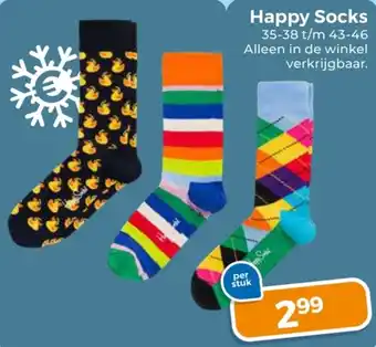 Happy Socks zijn vrolijke en kleurrijke sokken die verkrijgbaar zijn in de maten 35-38 t/m 43-46. Deze trendy sokken zijn per stuk te koop voor slechts 2.99. Met Happy Socks geef je jouw outfit een speelse twist en zorg je voor een vrolijke touch aan je look. Of je nu op zoek bent naar een leuk cadeautje of gewoon je sokkenlade wilt opfleuren, Happy Socks zijn altijd een goede keuze. Kom snel naar de winkel om jouw favoriete paar uit te kiezen en loop er voortaan stijlvol en happy bij. Verwen jezelf of een ander met deze comfortabele en modieuze sokken van Happy Socks!
