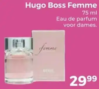 De prijs van de Hugo Boss Femme kan ook teruggevonden worden hierboven op de pagina, samen met de datum van wanneer de aanbieding beschikbaar is. Ook kun je de prijzen in de huidige Trekpleister folder of op de Trekpleister website controleren. De aanbiedingen verzekeren je van het kopen van de Trekpleister producten voor de laagste prijs.