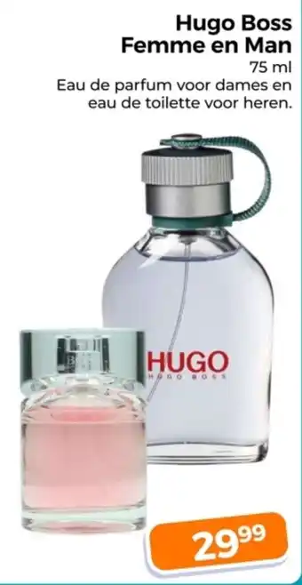 De aanbieding is verkrijgbaar in verschillende winkels, bekijk alle producten om de goedkoopste Hugo Boss Femme en Man te krijgen. Als je graag wilt kijken of het artikel met meer korting te koop is in een andere winkel, bekijk de categorie 'Drogist en Parfumerie'. Wellicht vind je deze aanbiedingen ook interessant: Hugo Boss Femme, Hugo Boss Femme & Hugo Boss Man.