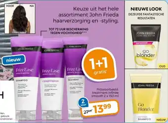 Keuze uit het hele assortiment John Frieda haarverzorging en styling. 1+1 gratis