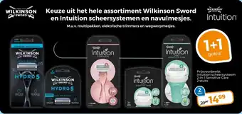 Koop Keuze uit het hele assortiment Wilkinson Sword en Intuition scheersystemen en navulmesjes. komende week met korting