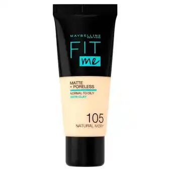 Maybelline New York Fit Me Matte & Poreless 105 Natural Ivory Foundation aanbieding en online acties bij Trekpleister