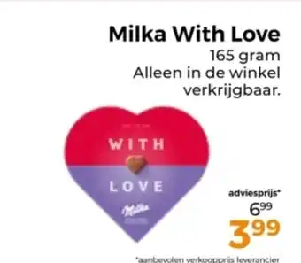 De prijs van de Milka With Love kan ook teruggevonden worden hierboven op de pagina, samen met de datum van wanneer de aanbieding beschikbaar is. Ook kun je de prijzen in de huidige Trekpleister folder of op de Trekpleister website controleren. De aanbiedingen verzekeren je van het kopen van de Trekpleister producten voor de laagste prijs.