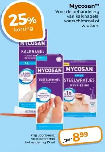 Trekpleister biedt naast de Mycosan een ruime collectie producten aan. Houd de wekelijkse Trekpleister folder in de gaten om de beste aanbiedingen en acties te vinden. Naast Mycosan, kunt u ook de volgende aanbiedingen vinden: Mycosan, Mycosan & Mycosan Wratten Bevriezing 50ML.