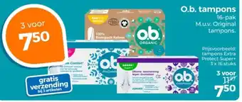 De aanbieding is verkrijgbaar in verschillende winkels, bekijk alle producten om de goedkoopste O.b. tampons te krijgen. Als je graag wilt kijken of het artikel met meer korting te koop is in een andere winkel, bekijk de categorie 'Drogist en Parfumerie'. Wellicht vind je deze aanbiedingen ook interessant: o.b. tampons, O.b menstruatie ondergoed & Keuze uit o.b. ProComfort.