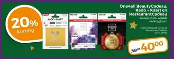 One4all BeautyCadeau, Kado + Kaart en RestaurantCadeau