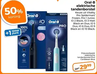 Keuze uit Vitality Pro Spiderman/ Frozen, Pro 1 Junior, iO 2 Black, iO 3 Matt Black en Duo, iO 5 Duo, iO 6 Duo, iO 9 Black en iO 10 Black.