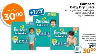 De aanbieding is verkrijgbaar in verschillende winkels, bekijk alle producten om de goedkoopste Pampers Baby Dry luiers te krijgen. Als je graag wilt kijken of het artikel met meer korting te koop is in een andere winkel, bekijk de categorie 'Drogist en Parfumerie'. Wellicht vind je deze aanbiedingen ook interessant: Pampers Baby Dry Luiers Maat 5+, Pampers Baby Dry luiers big pack & Pampers Baby Dry luiers big pack.