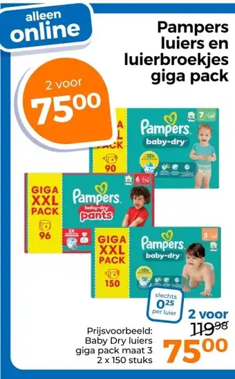 Pampers luiers en luierbroekjes giga pack aanbieding bij Trekpleister