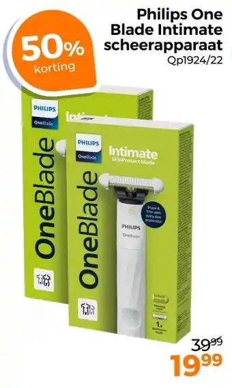 De aanbieding is verkrijgbaar in verschillende winkels, bekijk alle producten om de goedkoopste Philips One Blade Intimate te krijgen. Als je graag wilt kijken of het artikel met meer korting te koop is in een andere winkel, bekijk de categorie 'Drogist en Parfumerie'. Wellicht vind je deze aanbiedingen ook interessant: Philips One Blade Intimate Scheerapparaat, Philips one blade intimate scheer navulmesjes & Philips one blade navulmesjes.