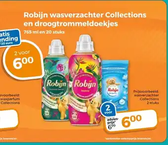Robijn wasverzachter Collections en droogtrommeldoekjes aanbieding bij Trekpleister
