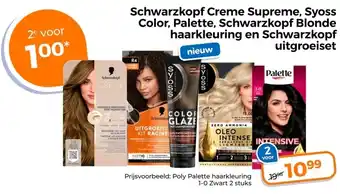 Schwarzkopf Creme Supreme, Syoss Color, Palette, Schwarzkopf Blonde haarkleuring en Schwarzkopf uitgroeiset aanbieding bij Trekpleister