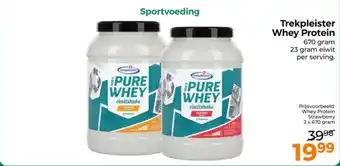 De prijs van de Sportvoeding Trekpleister Whey Protein kan ook teruggevonden worden hierboven op de pagina, samen met de datum van wanneer de aanbieding beschikbaar is. Ook kun je de prijzen in de huidige Trekpleister folder of op de Trekpleister website controleren. De aanbiedingen verzekeren je van het kopen van de Trekpleister producten voor de laagste prijs.