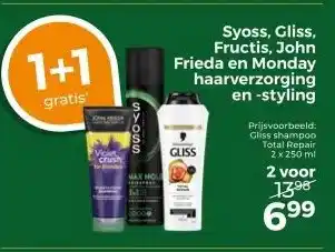 Syoss, Gliss, Fructis, John Frieda en Monday haarverzorging en -styling aanbieding bij Trekpleister