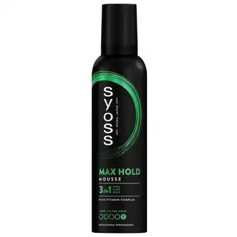 De aanbieding is verkrijgbaar in verschillende winkels, bekijk alle producten om de goedkoopste Syoss Max Hold Haarmousse te krijgen. Als je graag wilt kijken of het artikel met meer korting te koop is in een andere winkel, bekijk de categorie 'Drogist en Parfumerie'. Wellicht vind je deze aanbiedingen ook interessant: Syoss Max Hold Haarmousse, Syoss Max Hold Haarmousse 250 ML & Syoss Volume Hold 4 Haarmousse.