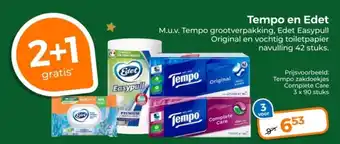 De aanbieding is verkrijgbaar in verschillende winkels, bekijk alle producten om de goedkoopste Tempo en Edet te krijgen. Als je graag wilt kijken of het artikel met meer korting te koop is in een andere winkel, bekijk de categorie 'Drogist en Parfumerie'. Wellicht vind je deze aanbiedingen ook interessant: Edet en Tempo Zakdoekjes, Demak'Up, Edet en Tempo & op Tempo.