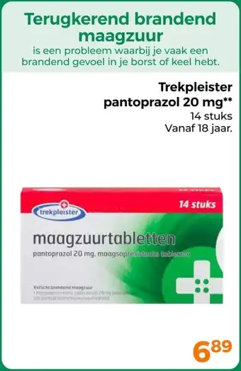 De prijs van de Trekpleister pantoprazol kan ook teruggevonden worden hierboven op de pagina, samen met de datum van wanneer de aanbieding beschikbaar is. Ook kun je de prijzen in de huidige Trekpleister folder of op de Trekpleister website controleren. De aanbiedingen verzekeren je van het kopen van de Trekpleister producten voor de laagste prijs.