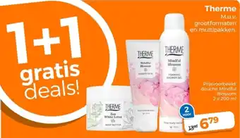 De aanbieding is verkrijgbaar in verschillende winkels, bekijk alle producten om de goedkoopste Therme te krijgen. Als je graag wilt kijken of het artikel met meer korting te koop is in een andere winkel, bekijk de categorie 'Drogist en Parfumerie'. Wellicht vind je deze aanbiedingen ook interessant: Therme, Therme Bodybutter Forestflower 225GR & Therme douchefoam en olie.