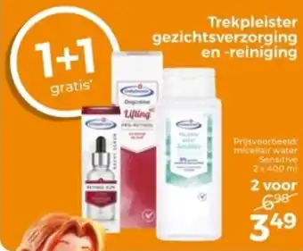 Verwen je huid met de hoogwaardige gezichtsverzorgings- en reinigingsproducten van Trekpleister. Profiteer nu van de actie waarbij je 1+1 gratis krijgt op geselecteerde Lifting producten. Kies bijvoorbeeld voor het micellair water voor slechts €3.49 per stuk. De producten zijn speciaal ontwikkeld voor de gevoelige huid en zorgen voor een effectieve reiniging en hydratatie. Geef je huid de verzorging die het verdient en geniet van een stralende teint. Of je nu op zoek bent naar een zachte reinigingsmelk, een verfrissende toner of een liftend serum, Trekpleister heeft alles wat je nodig hebt voor een complete gezichtsverzorgingsroutine. Profiteer nu van deze aanbieding en geef je huid de aandacht die het verdient.