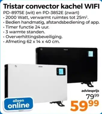De prijs van de Tristar convector kachel WiFi kan ook teruggevonden worden hierboven op de pagina, samen met de datum van wanneer de aanbieding beschikbaar is. Ook kun je de prijzen in de huidige Trekpleister folder of op de Trekpleister website controleren. De aanbiedingen verzekeren je van het kopen van de Trekpleister producten voor de laagste prijs.