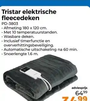 Tristar elektrische fleecedeken aanbieding en online acties bij Trekpleister