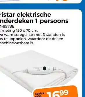 Tristar elektrische onderdeken 1-persoons aanbieding en online acties bij Trekpleister