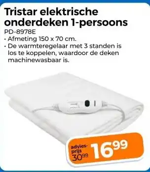 Nu in de aanbieding bij Trekpleister: Tristar elektrische onderdeken 1-persoons✅ Actie geldig van 3-02 t/m 15-02.