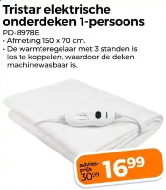 Tristar elektrische onderdeken 1 persoons aanbieding bij Trekpleister