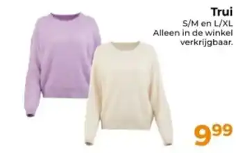De prijs van de Trui kan ook teruggevonden worden hierboven op de pagina, samen met de datum van wanneer de aanbieding beschikbaar is. Ook kun je de prijzen in de huidige Trekpleister folder of op de Trekpleister website controleren. De aanbiedingen verzekeren je van het kopen van de Trekpleister producten voor de laagste prijs.