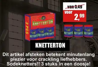 Dit artikel afsteken betekent minutenlang plezier voor crackling liefhebbers. Sodeknetters!! 3 stuks in een doosje! De Knetterton is een knetterend vuurwerkartikel dat zorgt voor een spectaculaire show vol geluid en licht. Met 3 stuks in een doosje kun je meerdere keren genieten van het knetterende spektakel. Perfect voor feestjes, oud en nieuw of gewoon voor de lol. De Knetterton is verkrijgbaar voor slechts 3,49 en biedt dus betaalbaar vermaak voor iedereen die van knetterend vuurwerk houdt. Bestel nu en maak van elke gelegenheid een knallend succes met de Knetterton 3 PCS van 3,49!