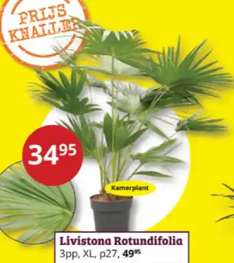 De prijs van de Livistona Rotundifolia kan ook teruggevonden worden hierboven op de pagina, samen met de datum van wanneer de aanbieding beschikbaar is. Ook kun je de prijzen in de huidige Tuinland folder of op de Tuinland website controleren. De aanbiedingen verzekeren je van het kopen van de Tuinland producten voor de laagste prijs.