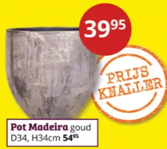 De Pot Madeira goud is een echte PRIJS KNALLER! Deze prachtige gouden pot is perfect voor het toevoegen van een vleugje luxe aan je interieur. Met zijn elegante design en glanzende afwerking zal deze pot zeker de aandacht trekken. De Pot Madeira goud is gemaakt van hoogwaardig materiaal en heeft een stijlvolle uitstraling. Of je nu een mooie plant wilt presenteren of gewoon wat extra glans aan je kamer wilt toevoegen, deze pot is de ideale keuze. Voor slechts 39.95 kun je deze eyecatcher in huis halen en genieten van zijn tijdloze schoonheid. Mis deze geweldige aanbieding niet en bestel vandaag nog jouw Pot Madeira goud!