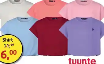 De prijs van de Shirt kan ook teruggevonden worden hierboven op de pagina, samen met de datum van wanneer de aanbieding beschikbaar is. Ook kun je de prijzen in de huidige Tuunte folder of op de Tuunte website controleren. De aanbiedingen verzekeren je van het kopen van de Tuunte producten voor de laagste prijs.