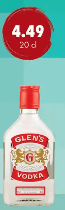 Geniet van de verfrissende smaak van Glen's Vodka in een handige fles van 20 cl voor slechts €4.49. Deze premium vodka, ook bekend als G, is perfect voor het mixen van je favoriete cocktails of om puur van te genieten. Met zijn zachte en zuivere karakter is Glen's Vodka een populaire keuze onder vodka liefhebbers over de hele wereld. Of je nu een feestje geeft of gewoon wilt ontspannen na een lange dag, deze vodka is altijd een goede keuze. Bestel nu je eigen fles Glen's Vodka en ontdek zelf waarom dit merk zo geliefd is bij velen. Proost op kwaliteit en geniet van elke slok!