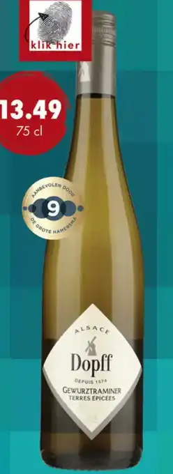 Proef de heerlijke Dopff AU Moulin Gewurztraminer Terres Epicées uit de Alsace, een grote aanrader! Deze wijn, geproduceerd door Dopff sinds 1574, heeft een rijke en kruidige smaak. Met tonen van exotisch fruit en bloemen is deze wijn perfect voor liefhebbers van aromatische wijnen. De Dopff AU Moulin Gewurztraminer Terres Epicées is verkrijgbaar in een fles van 75 cl en heeft een alcoholpercentage van 9%. Deze kwaliteitswijn is door Harold Hamersma beoordeeld met een 13.49 en is een echte aanrader voor liefhebbers van witte wijn. Klik hier om deze heerlijke wijn te bestellen en te genieten van een stukje Alsace in je glas!