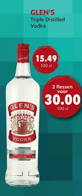 GLEN'S Triple Distilled Vodka 2 flessen voor 30.00