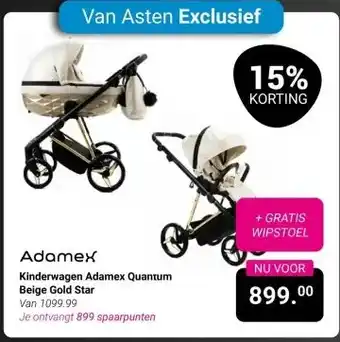 Nu in de aanbieding bij Van Asten BabySuperstore: Adamex Kinderwagen Adamex Quantum Beige Gold Star✅ Actie geldig van 5-01 t/m 4-02.