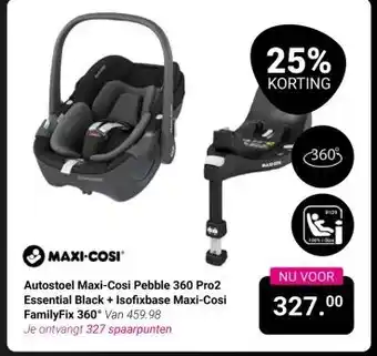 Nu in de aanbieding bij Van Asten BabySuperstore: Autostoel Maxi-Cosi Pebble 360 Pro2 Essential Black + Isofixbase Maxi-Cosi FamilyFix 360°✅ Actie geldig van 5-01 t/m 4-02.