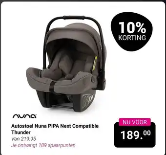Deze Autostoel Nuna PIPA Next Compatible Thunder is nu in de aanbieding bij Van Asten BabySuperstore. Op deze pagina vind je alle informatie over actuele prijzen, actievoorwaarden en looptijd. Vergelijk ook andere relevante aanbiedingen en acties rondom Autostoel Nuna PIPA Next Compatible Thunder, zodat je altijd de slimste keuze maakt. De aanbieding loopt van 05-01-2026 tot en met 04-02-2026. Is de actie verlopen? Geen probleem – vergelijkbare deals vind je altijd via deze pagina. Volg eventueel de productcategorie om automatisch op de hoogte te blijven van nieuwe aanbiedingen of prijsdalingen voor Autostoel Nuna PIPA Next Compatible Thunder.Veelgestelde vragen over Autostoel Nuna PIPA Next Compatible Thunder