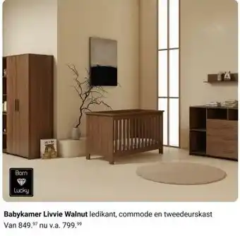 Babykamer Livvie Walnut ledikant, commode en tweedeurskast aanbieding en online acties bij Van Asten BabySuperstore
