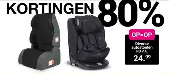 De prijs van de Diverse autostoelen kan ook teruggevonden worden hierboven op de pagina, samen met de datum van wanneer de aanbieding beschikbaar is. Ook kun je de prijzen in de huidige Van Asten BabySuperstore folder of op de Van Asten BabySuperstore website controleren. De aanbiedingen verzekeren je van het kopen van de Van Asten BabySuperstore producten voor de laagste prijs.