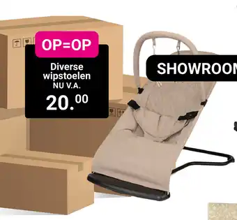 Ontdek nu onze showroom met diverse wipstoelen vanaf slechts €20.00! Wees er snel bij, want OP=OP. Deze comfortabele wipstoelen zijn ideaal voor het kalmeren en vermaken van je kleintje. Of je nu op zoek bent naar een basic model of een luxe variant met extra functies, bij ons vind je het allemaal. De wipstoelen zijn verkrijgbaar in verschillende kleuren en stijlen, zodat je altijd iets vindt dat perfect bij jouw interieur past. Profiteer nu van onze scherpe prijzen en breng een bezoek aan onze showroom om de wipstoelen zelf uit te proberen. Wacht niet te lang, want OP=OP! Kom langs en vind de perfecte wipstoel voor jouw baby.