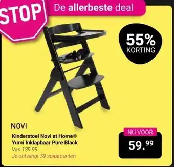 Nu in de aanbieding bij Van Asten BabySuperstore: Kinderstoel Novi at Home Yumi Inklapbaar Pure Black✅ Actie geldig van 5-01 t/m 4-02.