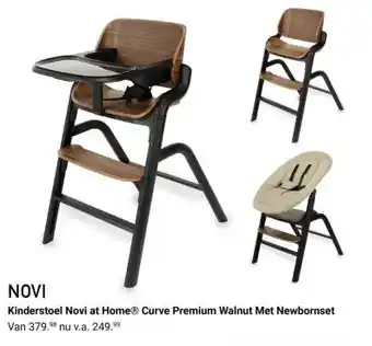 Nu in de aanbieding bij Van Asten BabySuperstore: Kinderstoel Novi at HomeⓇ Curve Premium Walnut Met Newbornset✅ Actie geldig van 27-12 t/m 28-02.