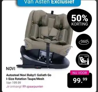 Nu in de aanbieding bij Van Asten BabySuperstore: NOVI Autostoel Novi Baby Goliath Go I-Size Rotation Taupe/Mesh✅ Actie geldig van 5-01 t/m 4-02.