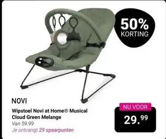 Nu in de aanbieding bij Van Asten BabySuperstore: NOVI Wipstoel Novi at Home® Musical Cloud Green Melange✅ Actie geldig van 5-01 t/m 4-02.