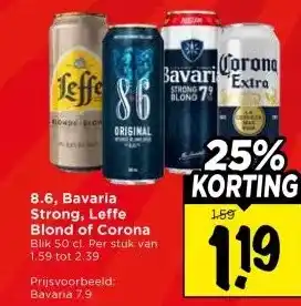 Nu in de aanbieding bij Vomar Voordeelmarkt: 8.6, Bavaria Strong, Leffe Blond of Corona✅ Actie geldig van 1-02 t/m 7-02.