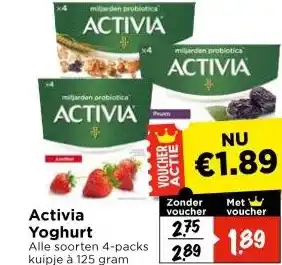 Nu in de aanbieding bij Vomar Voordeelmarkt: Activia Yoghurt✅ Actie geldig van 11-01 t/m 17-01.